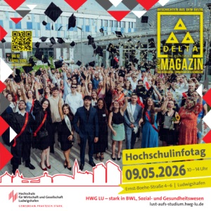 4 Lust aufS Studium?! LEBEN IM DELTA Hochschulinfotag auf dem neuen Campus der HWG LU Die Hochschule für Wirtschaft und Gesellschaft Ludwigshafen (HWG LU) lädt am Samstag, 09. Mai zum „Hochschulinfotag“ (HIT) auf den Campus in Ludwigshafen-Mundenheim ein. Zeitgleich veranstaltet die hochschulzugehörige Graduate School Rhein-Neckar (GSRN) dort ihren „Tag der Weiterbildung“. Damit bietet sich die beste Gelegenheit, einen Überblick über das komplette Studienangebot von Bachelor- über Master- bis hin zu berufsbegleitenden MBA-Programmen zu erhalten und den gemeinsamen Campus von HWG LU und GSRN kennenzulernen. Campus-Luft schnuppern beim HIT 2026 Bereit für den nächsten Schritt in Richtung Zukunft? Die HWG LU ist stark in Wirtschaftswissenschaften, im Sozial- und Gesundheitswesen! Beim Hochschulinfotag können Interessierte die Hochschule vor Ort kennenlernen, den Neubau und den neu gestalteten Außenbereich entdecken, mit Studierenden und Lehrenden ins Gespräch kommen und in der Mensa, Bibliothek und den Vorlesungsräumen erste Campus-Luft schnuppern. Auch das Ostasieninstitut, der Weincampus Neustadt, der Allgemeine Studierendenausschuss (AStA), die GSRN und das International Office stellen sich vor. Auf dem Programm stehen Schnuppervorlesungen, Infovorträge, Campusführungen, Einblicke in das hochmoderne Skills- und Simulationszentrum sowie ein buntes Begleitprogramm. In der „Meet-The-Students-Lounge“ kann man außerdem bei Kaffee und coolen Drinks mit Studierenden ins Gespräch kommen. Zeitgemäße Studieninhalte Beim HIT 2026 informiert die Hochschule über ihre mehr als 40 Studiengänge mit Schwerpunkt auf Wirtschaftswissenschaften sowie Sozial- und Gesundheitswesen: etwa Marketing, Wirtschaftspsychologie, Internationales Businessmanagement, Nachhaltigkeit, Personalmanagement, Logistik, Wirtschaftsinformatik, Weinbau & Önologie oder Gesundheitsökonomie, Soziale Arbeit, Pflege, Pflegepädagogik und Hebammenwissenschaft. Die Studieninhalte orientieren sich eng an der beruflichen Praxis und an zentralen Themen unserer Zeit wie KI, Nachhaltigkeit oder New Work.
